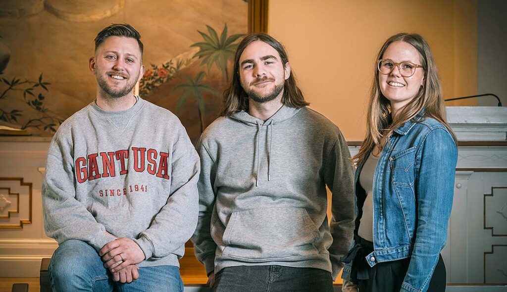 Från vänster: Joel Klintenberg, Elin Redin och Oliver Krieg. Joel och Elin sjunger sången tillsammans och Oliver har producerat Cantios nya låt. Bild: Pierre Eriksson Du kanske också vill läsa:Oliver har producerat musik till bland annat Helena…Karl-Johan Eklund menar att allt kommunicerar. Är…EFS nya styrelse. Fr. v.: LarsOlov Eriksson, Marie…EFS musikkonsulent Elin Redin och Petter Alin i…