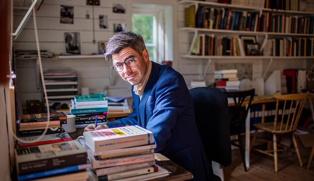 Joel Halldorf har mottagit Bibelpriset som årligen delas ut till en person som bidragit till att göra Bibeln känd och använd. Bild: Zandra Erikshed Du kanske också vill läsa:Från vänster: Joel Klintenberg, Elin Redin och…Joel Halldorf är författare, professor i…Joel HalldorfEn marknadsbild från Fridas vardag där många av…