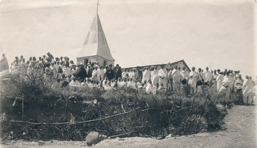 Föregående bildNästa bild Efter kyrkoinvigningen i Schumanegos lalai den 21 februari 1909, samlades församlingen utanför kyrkan. Texten för Adolf invigningstal var 1 Petr. 2:4-5. Du kanske också vill läsa:Missionskonferensen i Asmara 18-23 november 1908.…På väg till Ost-Afrika gör Johannes och Adolf…Den svenske kronprinsen Gustaf Adolf möttes av Haile…Högtidsmöte i Blå Hallen, Stockholms stadshus, med…