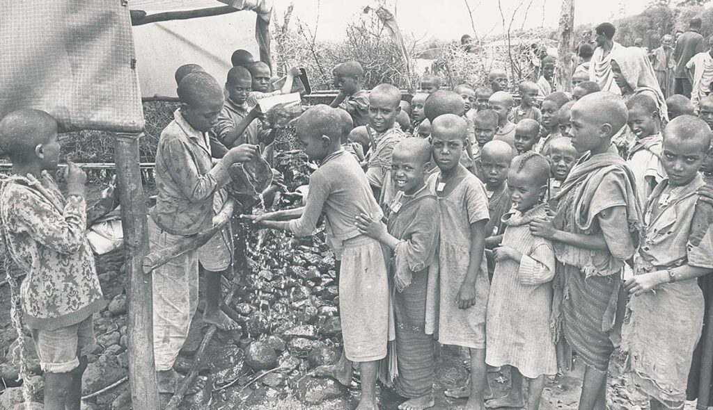 Nästa bild Barn som tvättar händerna inför matutdelning i Wollo, Etiopien, 1985. Bild: EFS Arkiv Du kanske också vill läsa:– Haki har varit min och mångas följeslagare i både…Lydia Larsson undersöker de som sökt vård på en…Arbetslaget i Betlehemskyrkan i Stockholm, som…Predikan i en gondby i slutet av 1800-talet.…