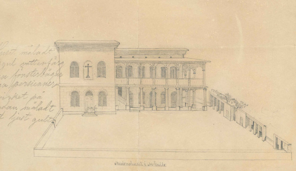 Föregående bildNästa bild Missionsstationen i Monkullo. På skissen står det noterat att huset skulle målas ljusgult och ha bruna fönsterbågar och gröna persienner. Trävirket på verandan skulle målas mycket ljusgult. Du kanske också vill läsa:Missionsstationen i Monkullo. På skissen står det…Missionsstationen i Monkullo i dagens Eritrea stod…Missionsstationen i Kismayo.Nio elever vid Lundahls skola i Monkullo (Imkullo)…