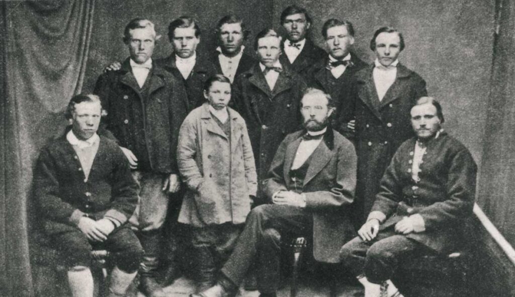 Föregående bildNästa bild Estlandsmissionären Thure Emanuel Thorén med sina seminarieelever i Paschlep (Nuckö, Estland). På hösten 1873 började Thorén utbilda nio unga män till lärare. Du kanske också vill läsa:Illustration från ett metodistiskt tältmöte. Förenta…EFS missionsskepp Ansgarius byggdes 1872 genom…Teamet från Sandvikengården är redo att besöka…Fader Emanuel menar att kristen kultur alltid varit…