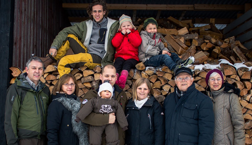 Fyra generationer Jakobsson, hela byn Mossebo och EFS i Sydöst-Sverige välkomnar er alla till Mossebo och Patrullriks sommaren 2017! Fr.v. Lennart, Karin, Markus med Lova i famnen, Josefin, Halvar och Linnea Jakobsson. Uppe på veden: Samuel, Tilde och Hugo Jakobsson.