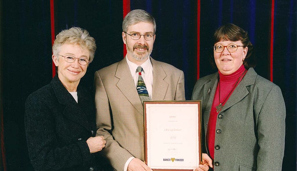 Föregående bildNästa bild Kajsa Lindståhl, VD för Banco, överlämnar diplom till Martin Nilsson, informatör för EFS och Berit Hofgren, vice ordförande för EFS, år 2000. Du kanske också vill läsa:EFS missionsföreståndare Kerstin Oderhem delade ut…Övre raden fr v: Anna Aronsson, Ingrid Stenberg,…På Johannelund läste Olof om EFS rötter, Allan…Kajsa hade en föreställning om att man behövde vara…