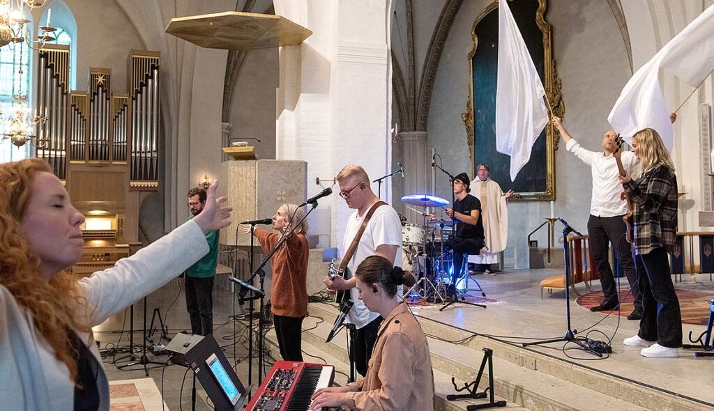 Föregående bildNästa bild Lovsången leddes av ett team från Hope for this nation. Du kanske också vill läsa:Sanna Välipakka och Alexander Forsberg leder lovsång…Den ekumeniska rörelsen Hope for this nation ledde…Panelsamtal om »Att leva tillsammans rent praktiskt«…EFS produktionsansvarige Dan Woodrow hyllar alla…