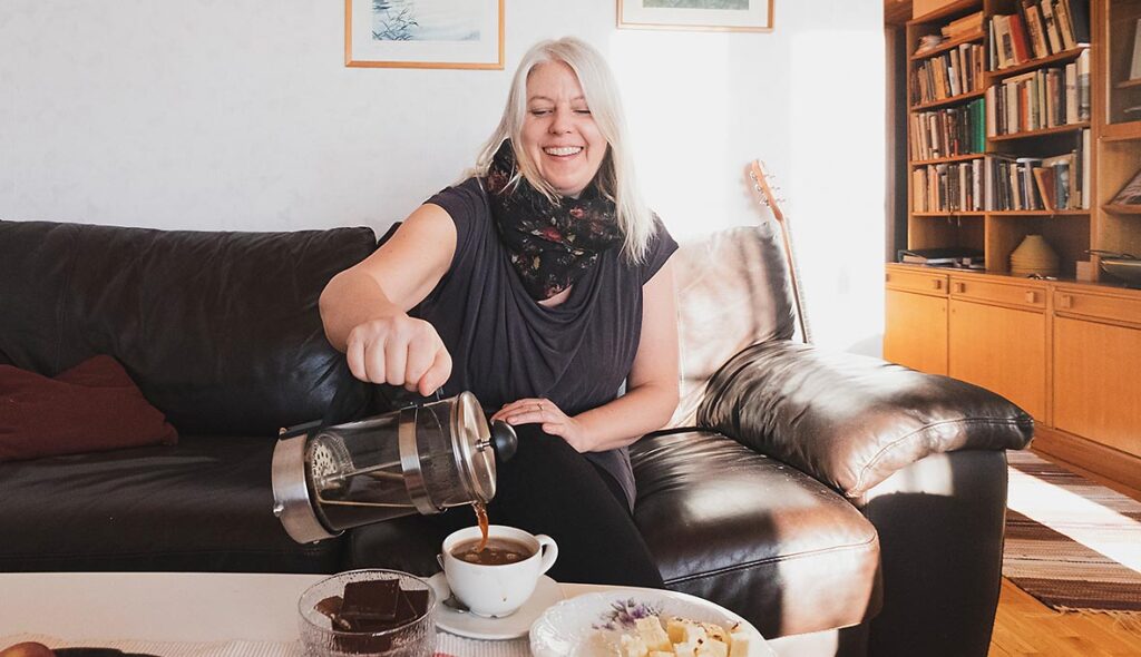 Föregående bild Maria bjuder på kaffe i en mugg med motivet av den samiska flaggan och berättar hur bra hon trivs i den lilla byn dit hon har flyttat. Bild: Lovisa Fundell Du kanske också vill läsa:Maria Smeds har alltid känt sig kallad att plantera…– Det här är mitt liv. Jag är van att vara på…– En liten kaffekopp kan i sin enkelhet betyda så…Elise har en sprudlande personlighet och brister…