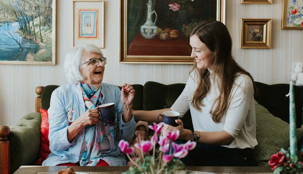 Elise har en sprudlande personlighet och brister ofta ut i hjärtligt skratt. Här tillsammans med Budbärarens Lovisa Lo Fundell. Strax innan hon fyllde 60 var hon på botten av sitt liv. – Hade jag haft en kniv skulle jag nog skurit halsen av den som kom i min väg, berättar hon. Bild: Erika Persson