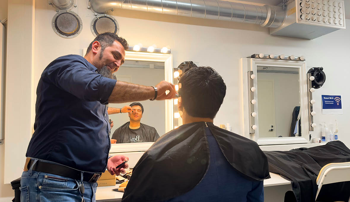Föregående bildNästa bild Programansvarig Nader Taghizadeh förbereder Arash Jan för inspelning av nya avsnitt av Sun of Hope. Bild: Sat-7