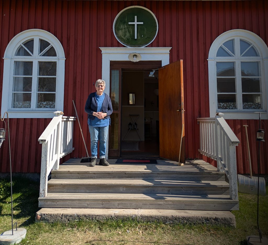 Föregående bildNästa bild Inger Abrahamsson på trappan till bönhuset i Lillpite. Du kanske också vill läsa:Sist in vid festhögmässan gick biskop Fredrik…Inger och Lars Bernspång tog emot EFS i Luleås pris…Från vänster: Siri Adolphsson, Matilda Westlund,…Ett samtal om reformation mellan Johan Ericson,…